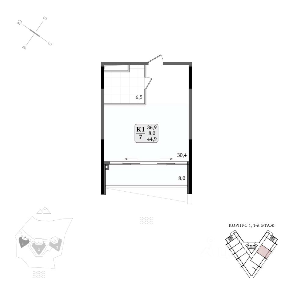 Продаются апартаменты 1/007 площадью 44,9 м2