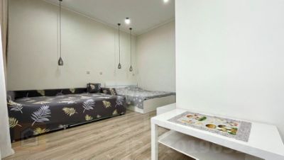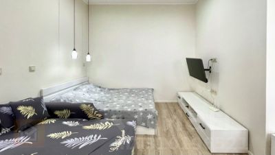 Дизайнерские апартаменты 42.3 кв.м на 7-м этаже современного 9-этажного монолитного дома, построенного в 2019 году. Высокие потолки в 3.3 метра и большие окна, выходящие на улицу, создают ощущение простора и заливают комнату светом
