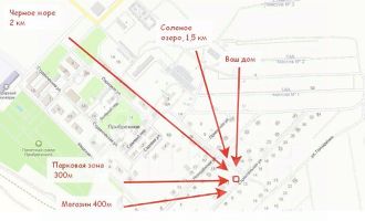 А до живописной Набережной Сакского озера всего несколько минут пешком (900м.)! До моря всего 4 км!