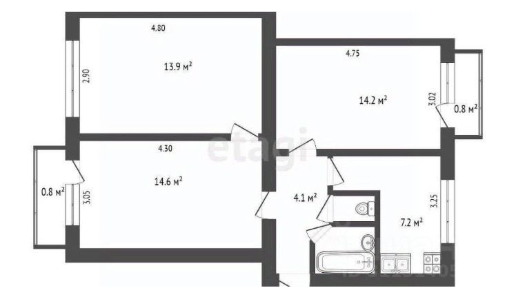 57,2 м²