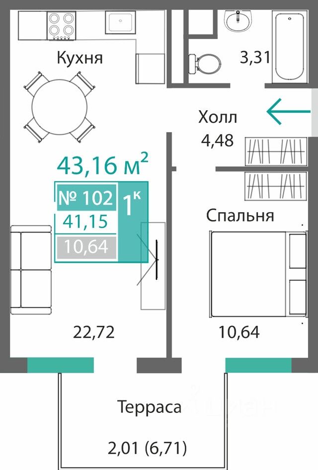 Продаётся 1-комнатная квартира в строящемся доме (Этап 1), срок сдачи: I-кв. 2028, общей площадью 43.16 кв.м., на 1 этаже. Новый жилой комплекс от ГК "Монолит" по адресу: Республика Крым, Симферополь, улица Святителя Гурия