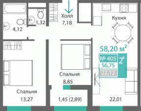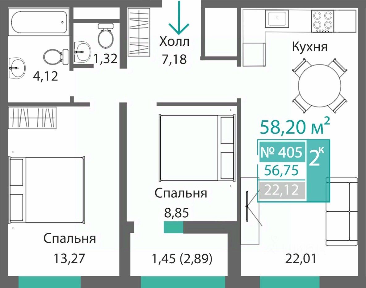 Продаётся 2-комнатная квартира в строящемся доме (Этап 1), срок сдачи: I-кв. 2028, общей площадью 58.2 кв.м., на 7 этаже. Новый жилой комплекс от ГК "Монолит" по адресу: Республика Крым, Симферополь, улица Святителя Гурия
