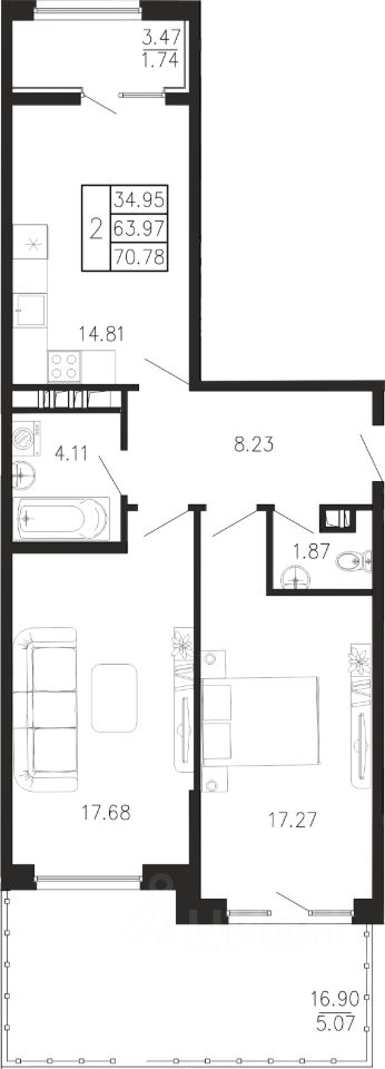 Общая площадь70,78 м²