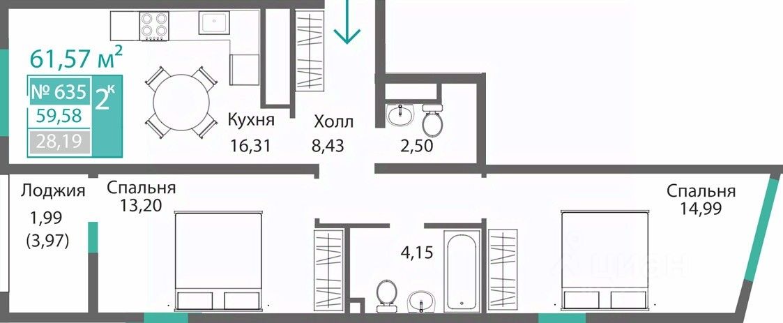 Продаётся 2-комнатная квартира в строящемся доме (Этап 1), срок сдачи: I-кв. 2028, общей площадью 61.57 кв.м., на 7 этаже. Новый жилой комплекс от ГК "Монолит" по адресу: Республика Крым, Симферополь, улица Святителя Гурия
