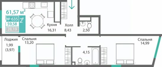 Продаётся 2-комнатная квартира в строящемся доме (Этап 1), срок сдачи: I-кв. 2028, общей площадью 61.57 кв.м., на 3 этаже. Новый жилой комплекс от ГК "Монолит" по адресу: Республика Крым, Симферополь, улица Святителя Гурия