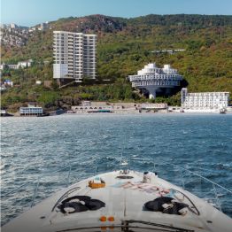 Комплекс расположен на берегу, всего в 180 метрах от Золотого пляжа, в 5 км от центра Ялты, и в нескольких десятках метров от знаменитой Царской (Солнечной) тропы. Первая линия, потрясающие виды на море, горы Аю-Даг и Ай-Петри, Ласточкино гнездо.