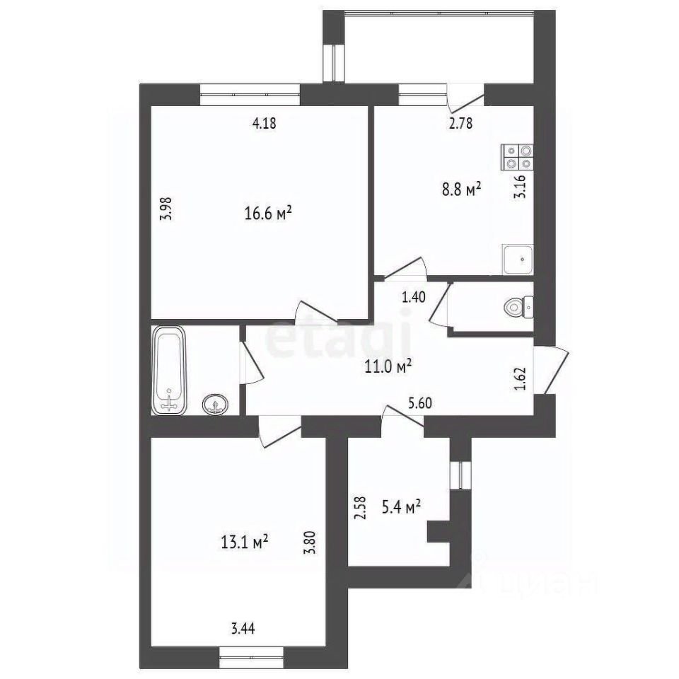 В квартире: две изолированные комнаты, кухня, застекленный балкон, большой коридор, санузел раздельный и старая котельная (которую можно переделать в гардеробную).