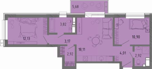 Продаётся квартира 307 площадью 63,66 м2 в новом ЖК СОК