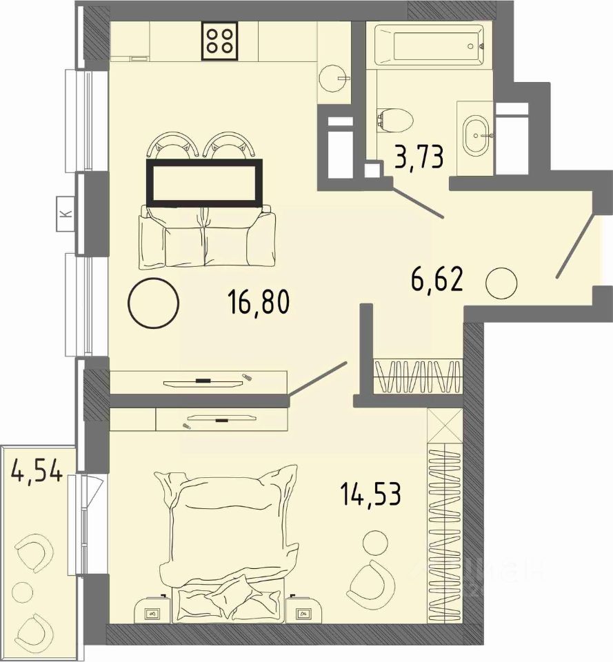 Продаётся квартира 318 площадью 46,22 м2 в новом ЖК СОК