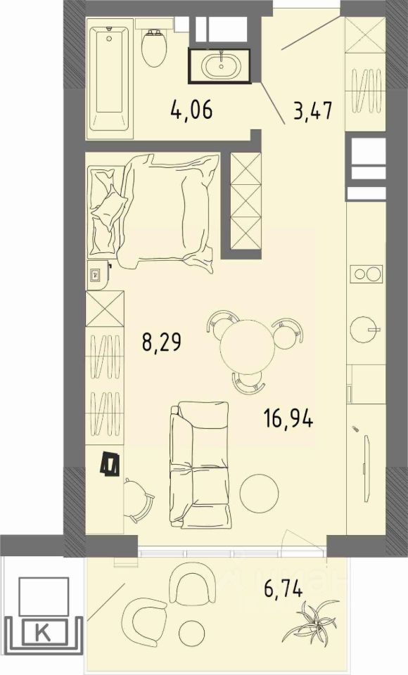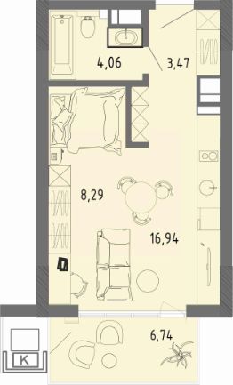 Продаётся квартира 336 площадью 39,5 м2 в новом ЖК СОК