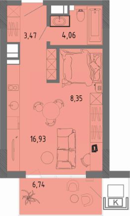 Продаётся квартира 363 площадью 39,55 м2 в новом ЖК СОК
