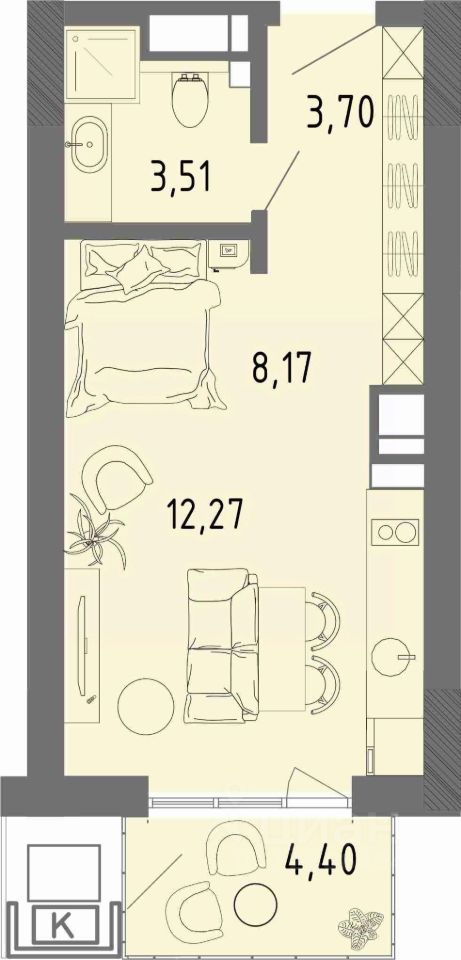 Продаётся квартира 376 площадью 32,05 м2 в новом ЖК СОК