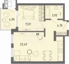 Продаётся квартира 123 площадью 48,12 м2 в новом ЖК СОК