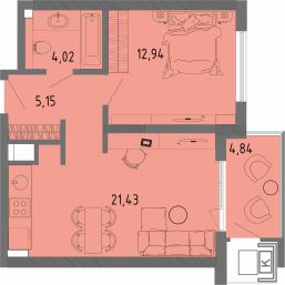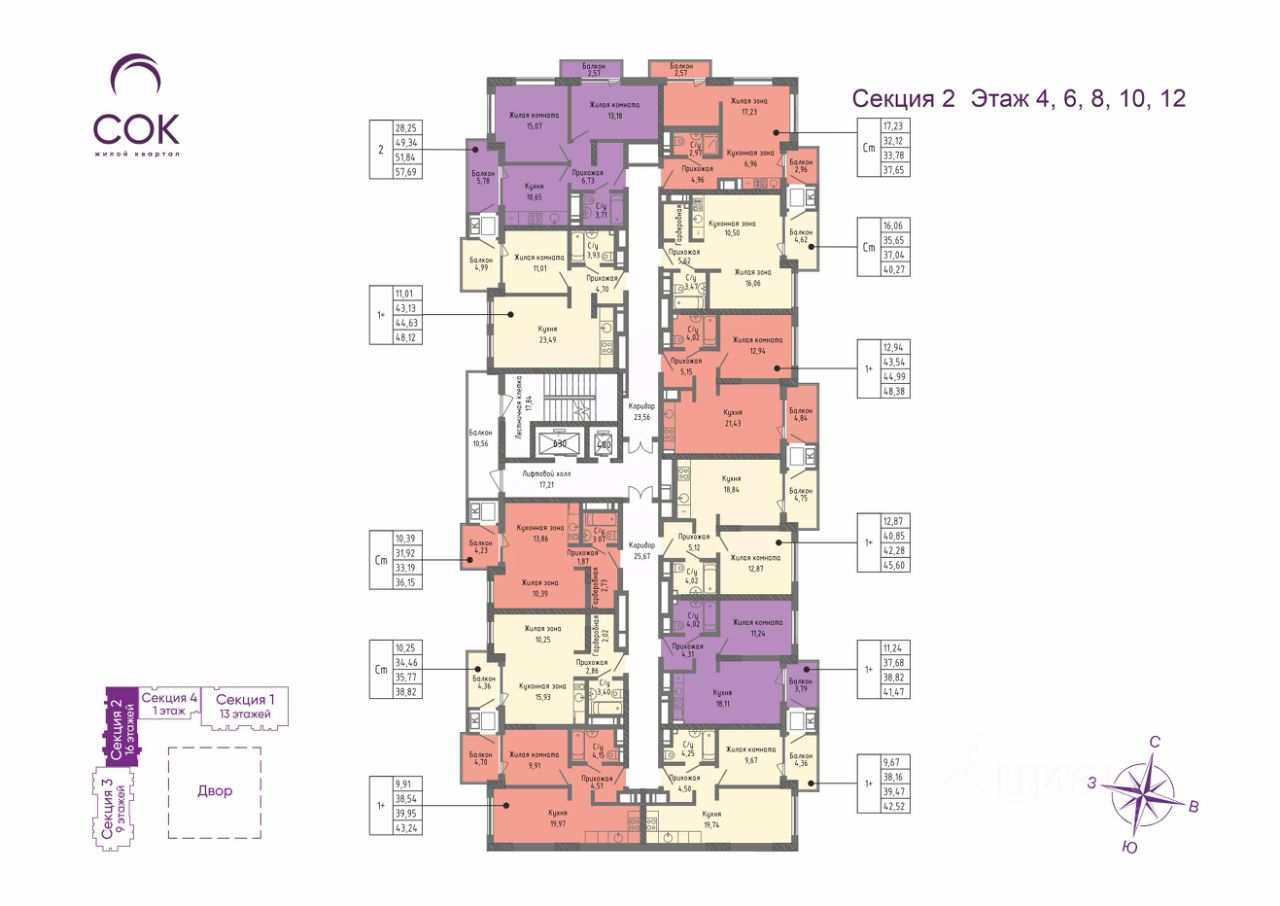 Продаётся квартира 127 площадью 48,38 м2 в новом ЖК СОК
