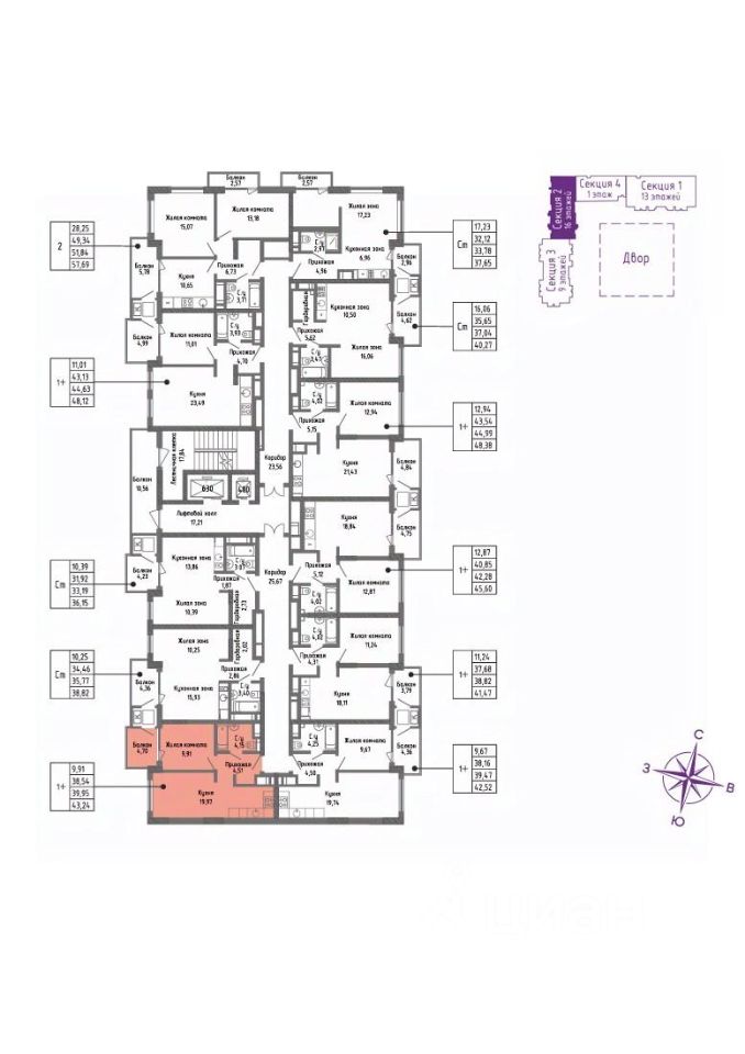 Продаётся квартира 153 площадью 43,24 м2 в новом ЖК СОК
