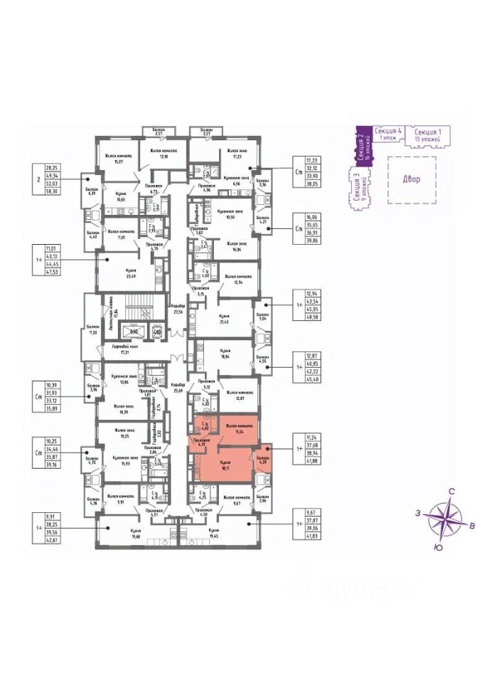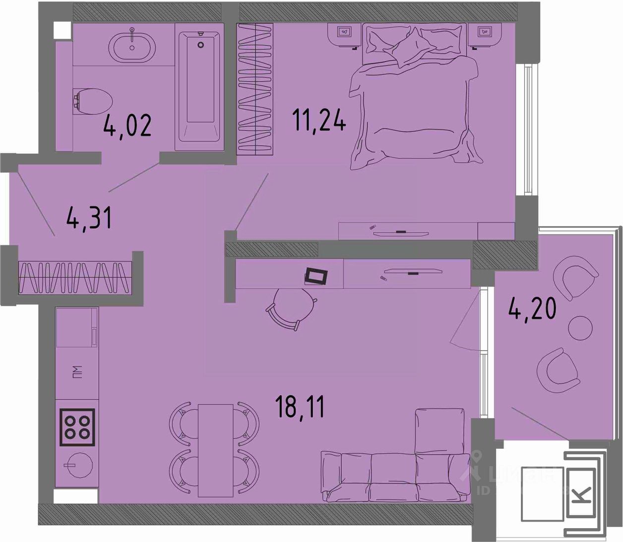 Продаётся квартира 162 площадью 41,88 м2 в новом ЖК СОК
