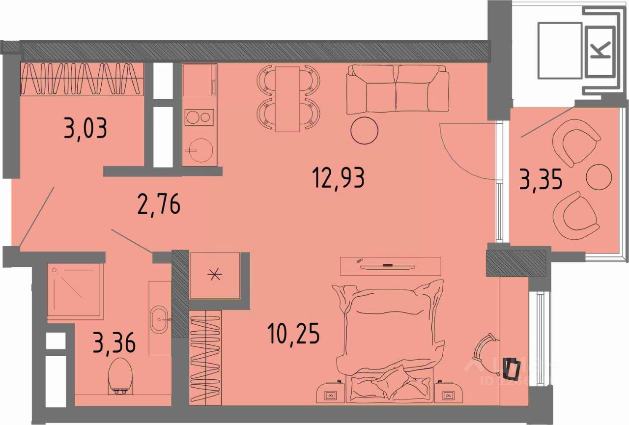 Продаётся квартира 15 площадью 35,68 м2 в новом ЖК СОК