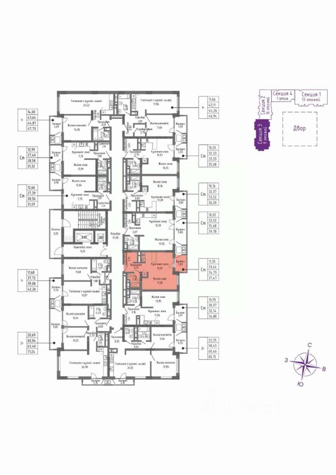 Продаётся квартира 30 площадью 37,47 м2 в новом ЖК СОК