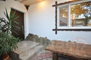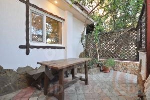 Одноэтажный летний домик, площадью 12 кв. м., с перспективой строительства второго мансардного этажа с видом на море и набережную. В домике газовая плита, колонка для горячей воды, душевая. Оснащен кондиционером, телевизором, большой двуспальной кроватью. Домик имеет деревянную беседку для отдыха на свежем воздухе, с ротанговой мебелью.