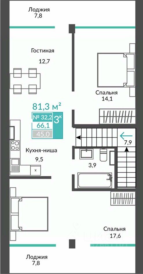 Продаются 3-комнатные апартаменты в строящемся доме (Корпус 9), срок сдачи: III-кв. 2024, общей площадью 81.7 кв.м., на 2 этаже. КУРОРТНЫЙ КЛУБ С ЗАБОТЛИВЫМ СЕРВИСОМ