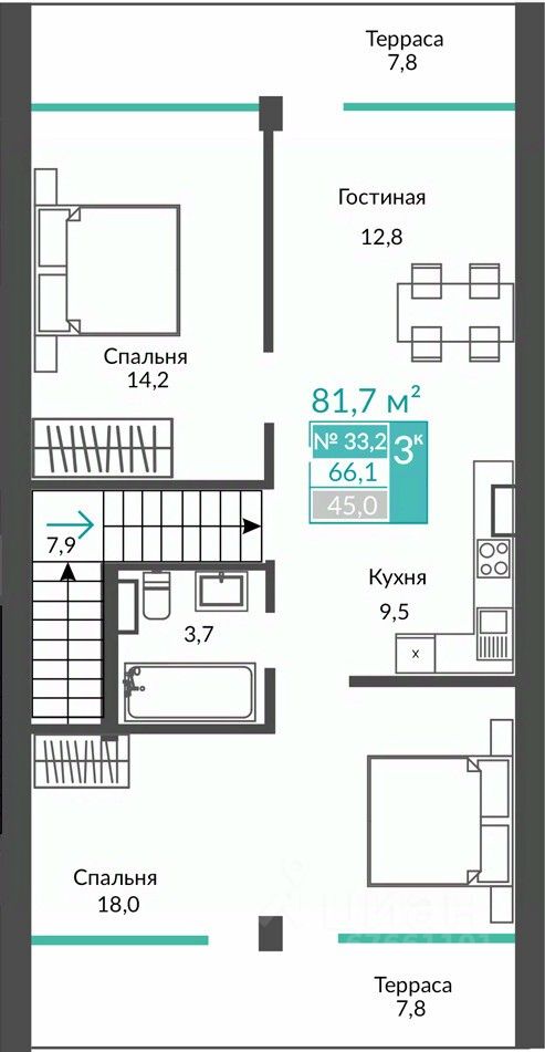 Продаются 3-комнатные апартаменты в строящемся доме (Корпус 9), срок сдачи: III-кв. 2024, общей площадью 81.7 кв.м., на 2 этаже. КУРОРТНЫЙ КЛУБ С ЗАБОТЛИВЫМ СЕРВИСОМ