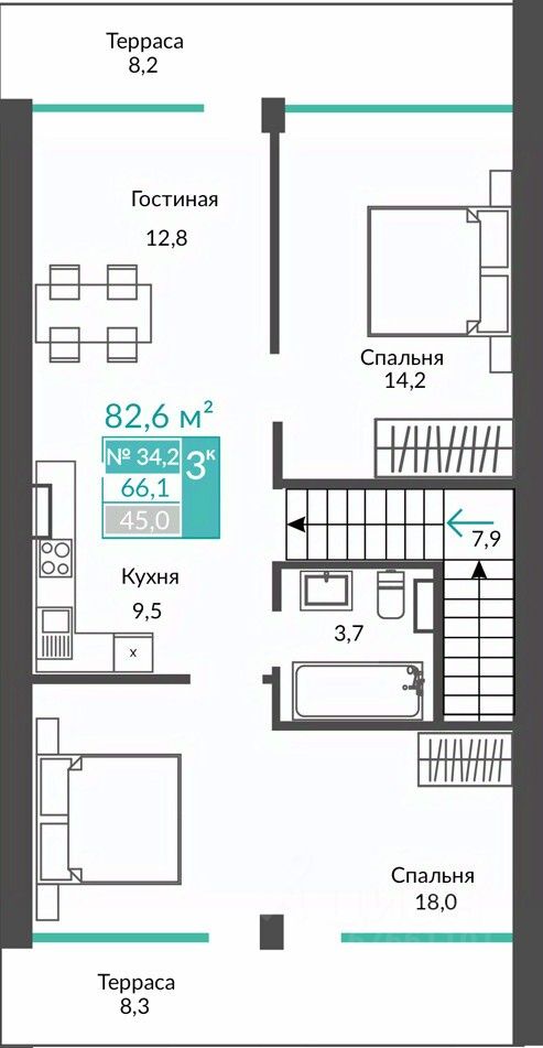 Продаются 3-комнатные апартаменты в строящемся доме (Корпус 9), срок сдачи: III-кв. 2024, общей площадью 82.6 кв.м., на 2 этаже. КУРОРТНЫЙ КЛУБ С ЗАБОТЛИВЫМ СЕРВИСОМ