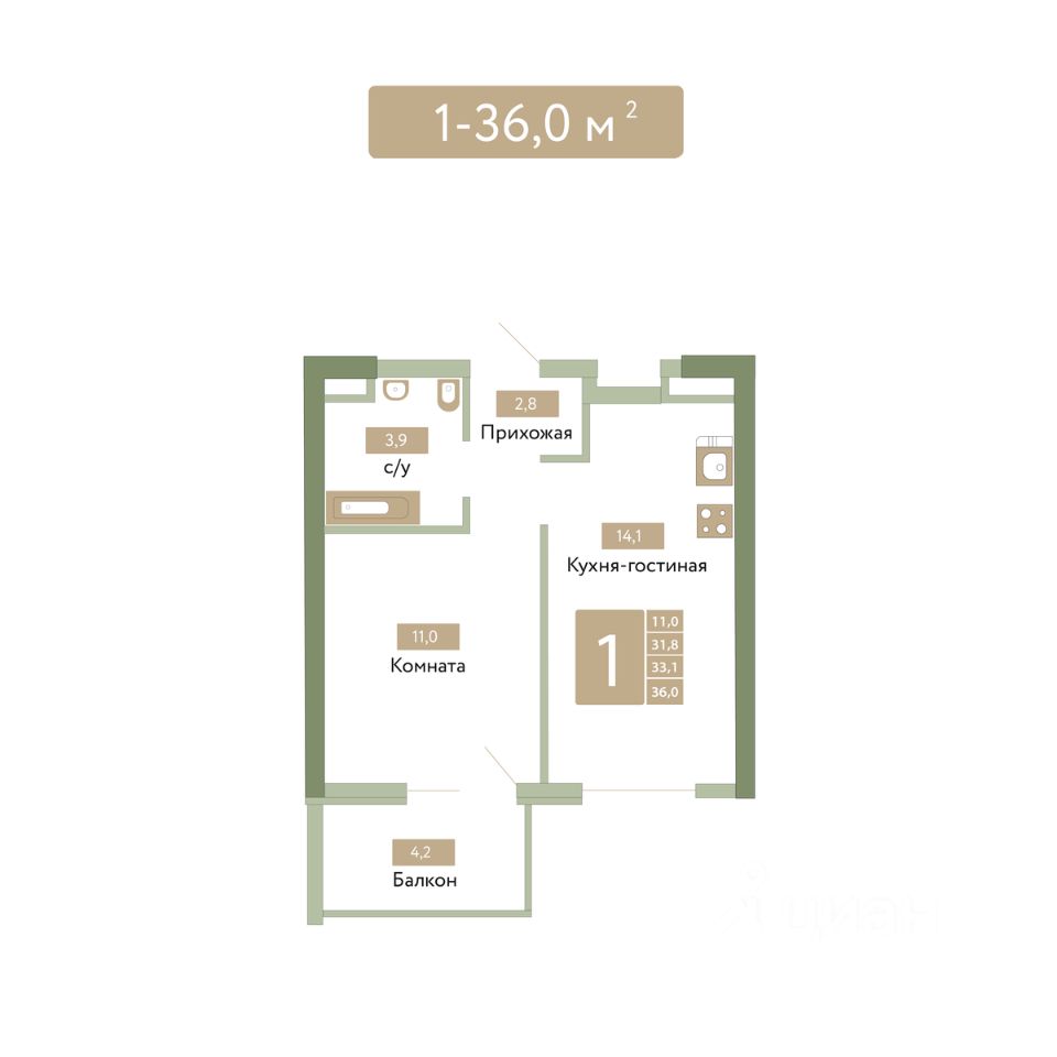 Продаётся 1-комнатная квартира в строящемся доме (Дом 6к1), срок сдачи: II-кв. 2026, общей площадью 33.1 кв.м., на 12 этаже. УМНЫЙ ЖИЛОЙ КОМПЛЕКС