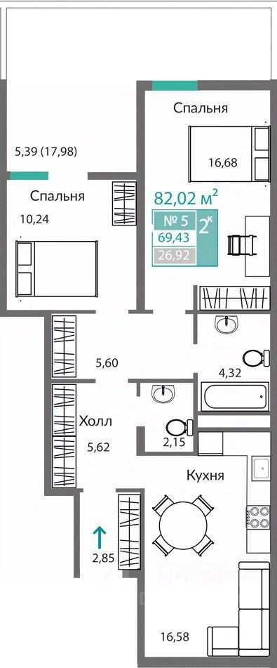 Продаётся 2-комнатная квартира в строящемся доме (15 этап (Секция М, К3, М1.2)), срок сдачи: I-кв. 2027, общей площадью 69.43 кв.м., на 1 этаже. ОТКРЫВАЕМ НОВЫЕ ГОРИЗОНТЫ