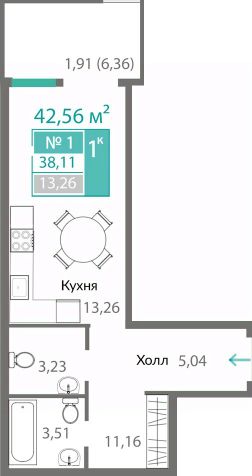 Продаётся 1-комнатная квартира в строящемся доме (9 этап (Секция Б9.2)), срок сдачи: I-кв. 2027, общей площадью 38.11 кв.м., на 1 этаже. ОТКРЫВАЕМ НОВЫЕ ГОРИЗОНТЫ