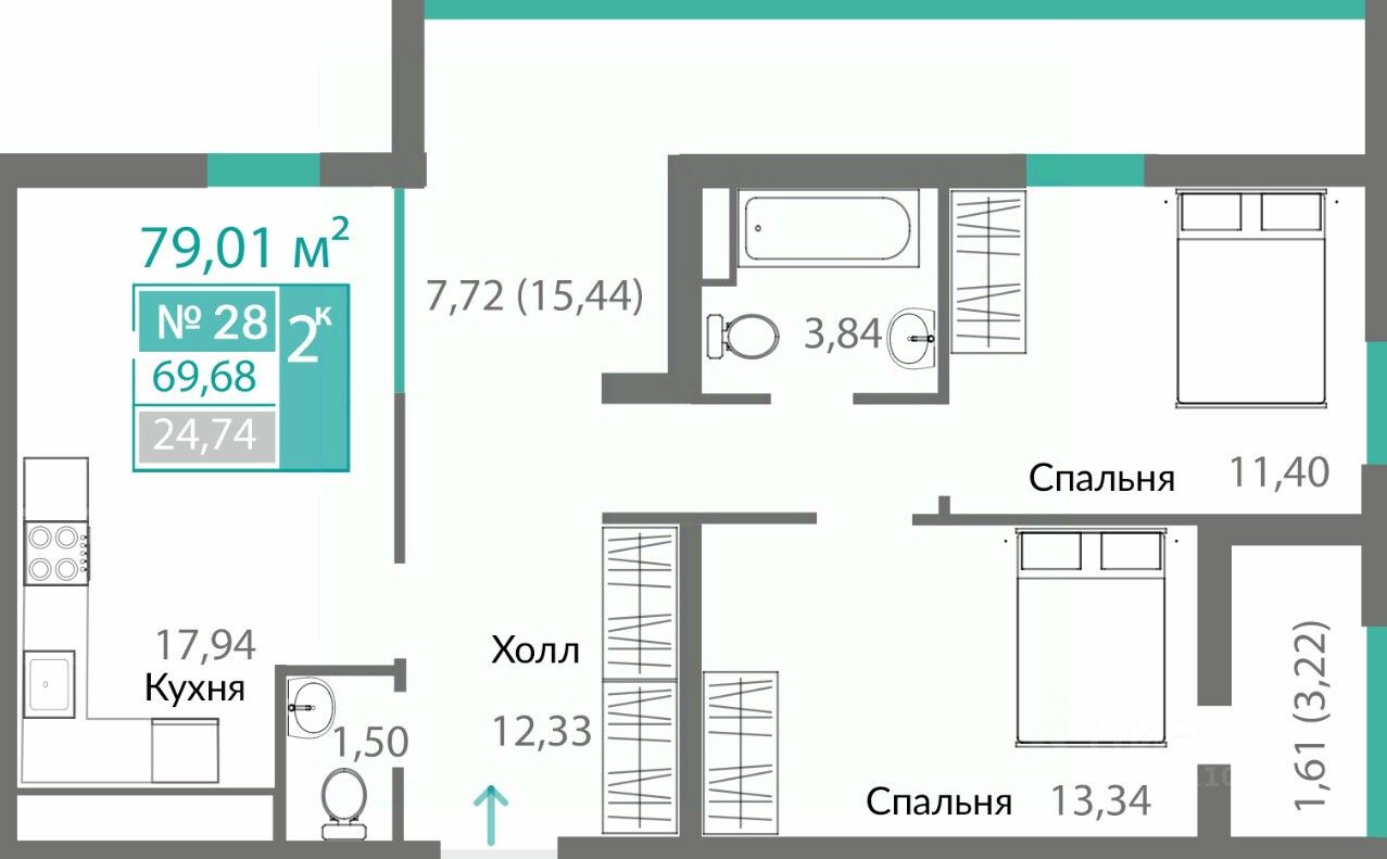 Продаётся 2-комнатная квартира в строящемся доме (9 этап (Секция Б9.2)), срок сдачи: I-кв. 2027, общей площадью 69.68 кв.м., на 5 этаже. ОТКРЫВАЕМ НОВЫЕ ГОРИЗОНТЫ