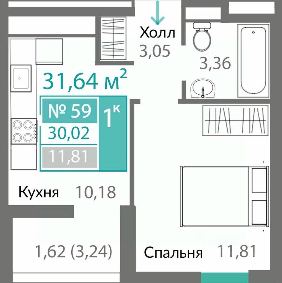 Продаётся 1-комнатная квартира в строящемся доме (9 этап (Секция Б9.2)), срок сдачи: I-кв. 2027, общей площадью 30.02 кв.м., на 10 этаже. ОТКРЫВАЕМ НОВЫЕ ГОРИЗОНТЫ