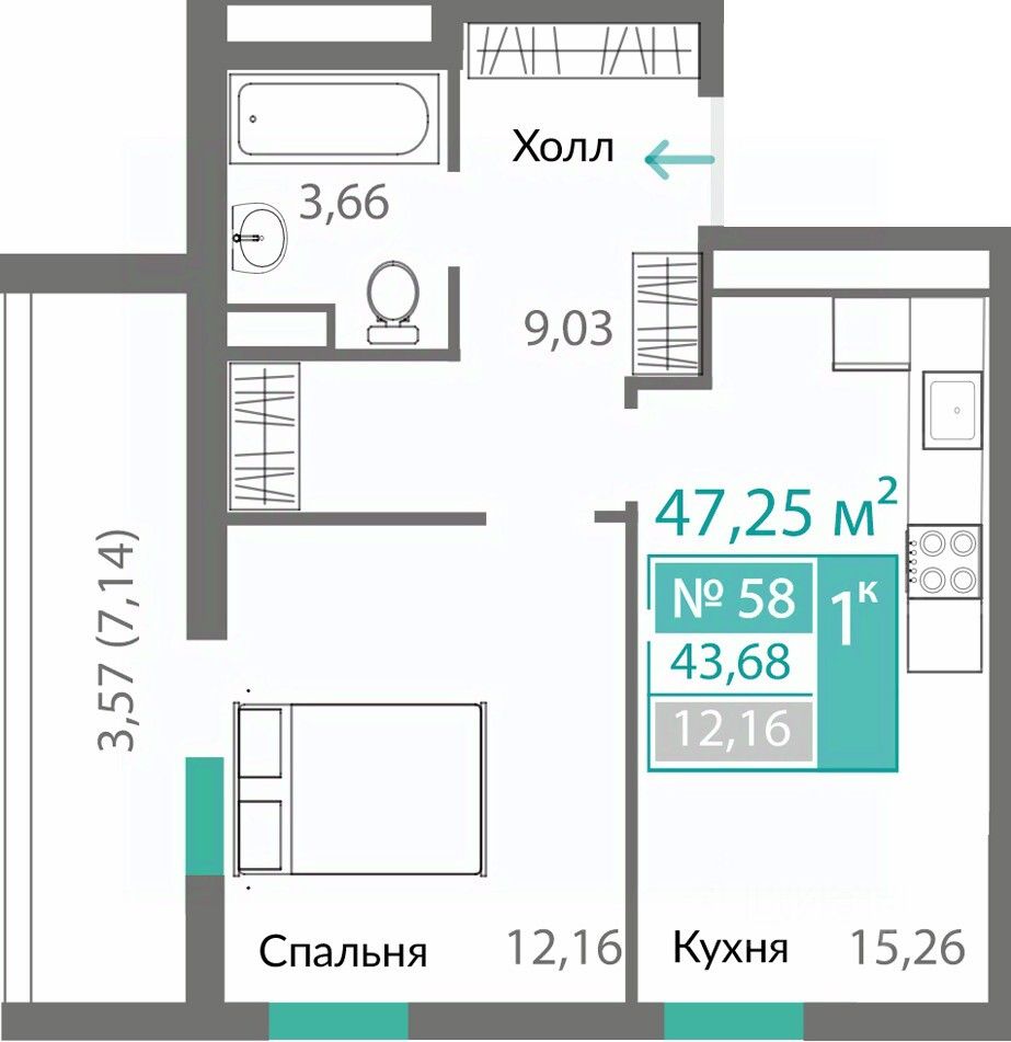 Продаётся 1-комнатная квартира в строящемся доме (14 этап (Секция Г9.1)), срок сдачи: I-кв. 2027, общей площадью 43.68 кв.м., на 8 этаже. ОТКРЫВАЕМ НОВЫЕ ГОРИЗОНТЫ