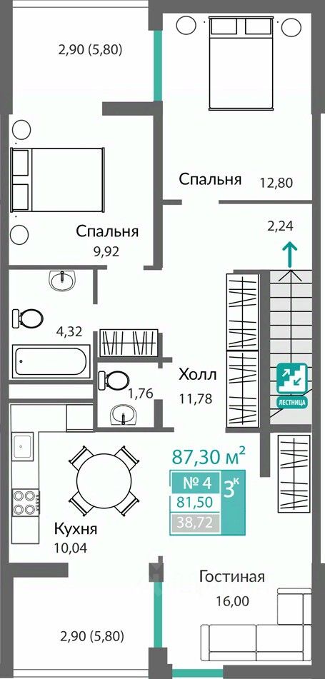 Продаётся 3-комнатная квартира в строящемся доме (10 этап (Секция М)), срок сдачи: I-кв. 2027, общей площадью 81.5 кв.м., на 2 этаже. ОТКРЫВАЕМ НОВЫЕ ГОРИЗОНТЫ