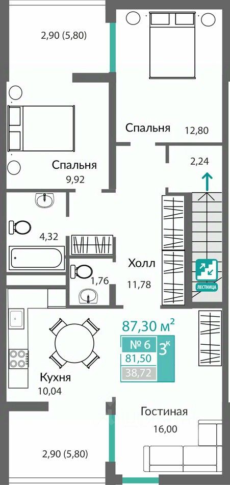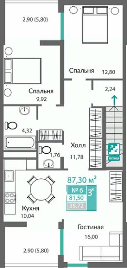 Продаётся 3-комнатная квартира в строящемся доме (10 этап (Секция М)), срок сдачи: I-кв. 2027, общей площадью 81.5 кв.м., на 2 этаже. ОТКРЫВАЕМ НОВЫЕ ГОРИЗОНТЫ