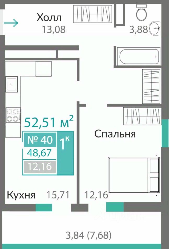 Продаётся 1-комнатная квартира в строящемся доме (13 этап (Секция Б8)), срок сдачи: I-кв. 2027, общей площадью 48.67 кв.м., на 6 этаже. ОТКРЫВАЕМ НОВЫЕ ГОРИЗОНТЫ