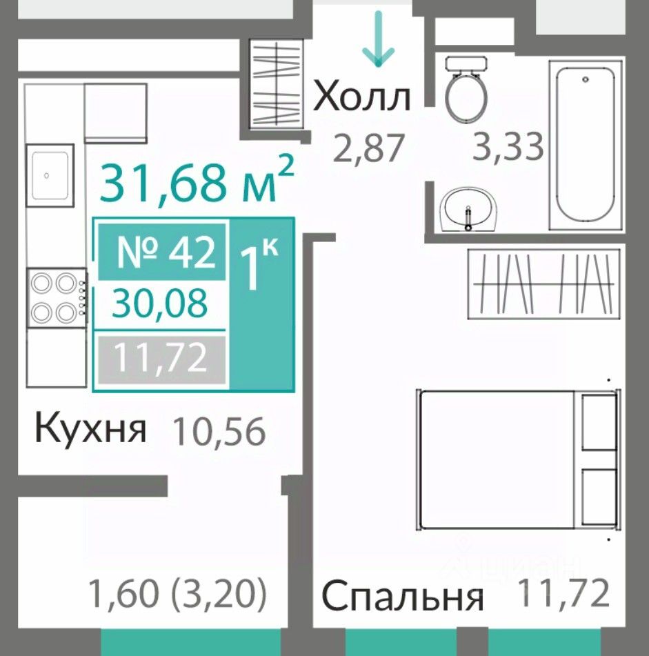 Продаётся 1-комнатная квартира в строящемся доме (13 этап (Секция Б8)), срок сдачи: I-кв. 2027, общей площадью 30.08 кв.м., на 7 этаже. ОТКРЫВАЕМ НОВЫЕ ГОРИЗОНТЫ