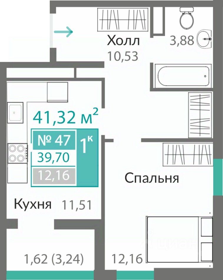 Продаётся 1-комнатная квартира в строящемся доме (13 этап (Секция Б8)), срок сдачи: I-кв. 2027, общей площадью 39.7 кв.м., на 7 этаже. ОТКРЫВАЕМ НОВЫЕ ГОРИЗОНТЫ