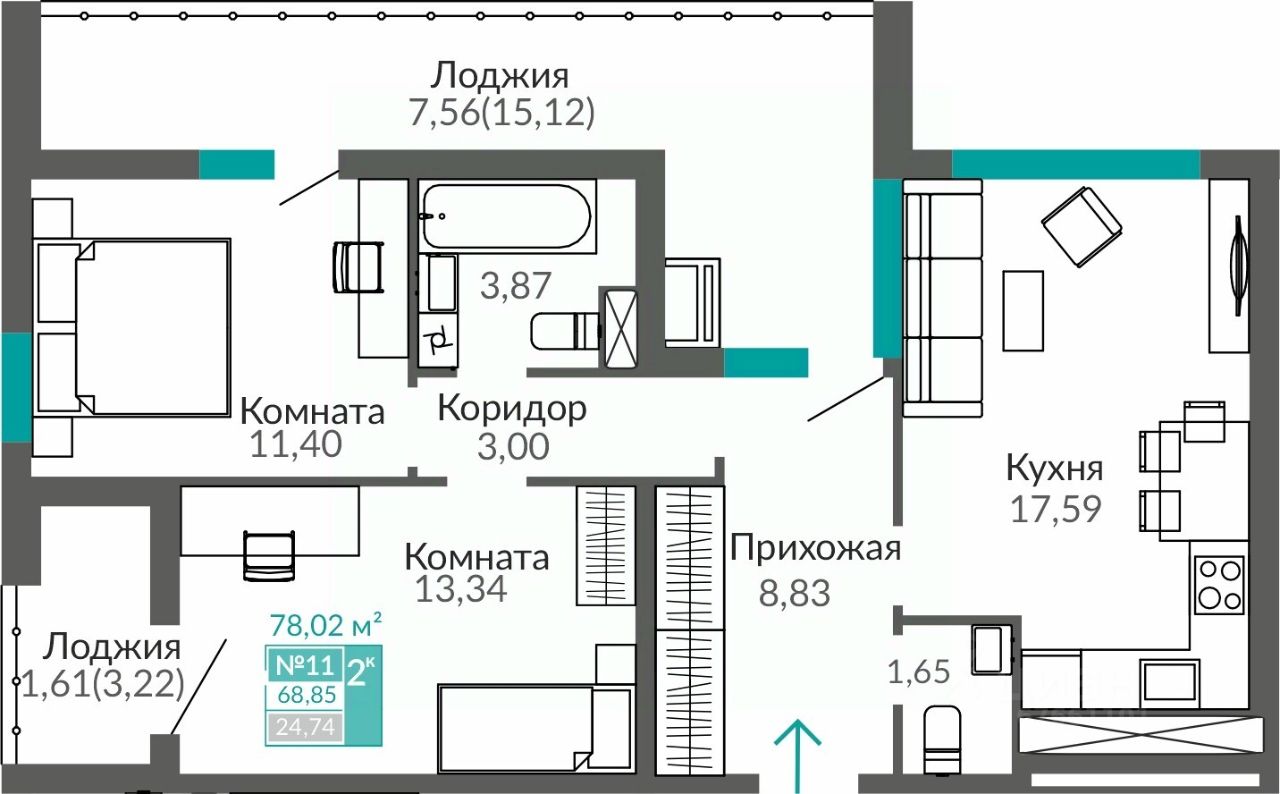 Продаётся 2-комнатная квартира в строящемся доме (Этап 16 (Секция В9)), срок сдачи: II-кв. 2027, общей площадью 68.85 кв.м., на 2 этаже. В жизни каждого наступает момент, когда мы понимаем, что выросли. Приходит время твердо идти вперед, расширять границы и открывать новые горизонты.