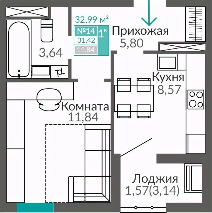 Продаётся 1-комнатная квартира в строящемся доме (Этап 16 (Секция В9)), срок сдачи: II-кв. 2027, общей площадью 31.42 кв.м., на 3 этаже. В жизни каждого наступает момент, когда мы понимаем, что выросли. Приходит время твердо идти вперед, расширять границы и открывать новые горизонты.