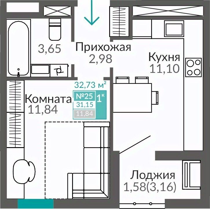 Продаётся 1-комнатная квартира в строящемся доме (Этап 16 (Секция В9)), срок сдачи: II-кв. 2027, общей площадью 31.15 кв.м., на 5 этаже. В жизни каждого наступает момент, когда мы понимаем, что выросли. Приходит время твердо идти вперед, расширять границы и открывать новые горизонты.
