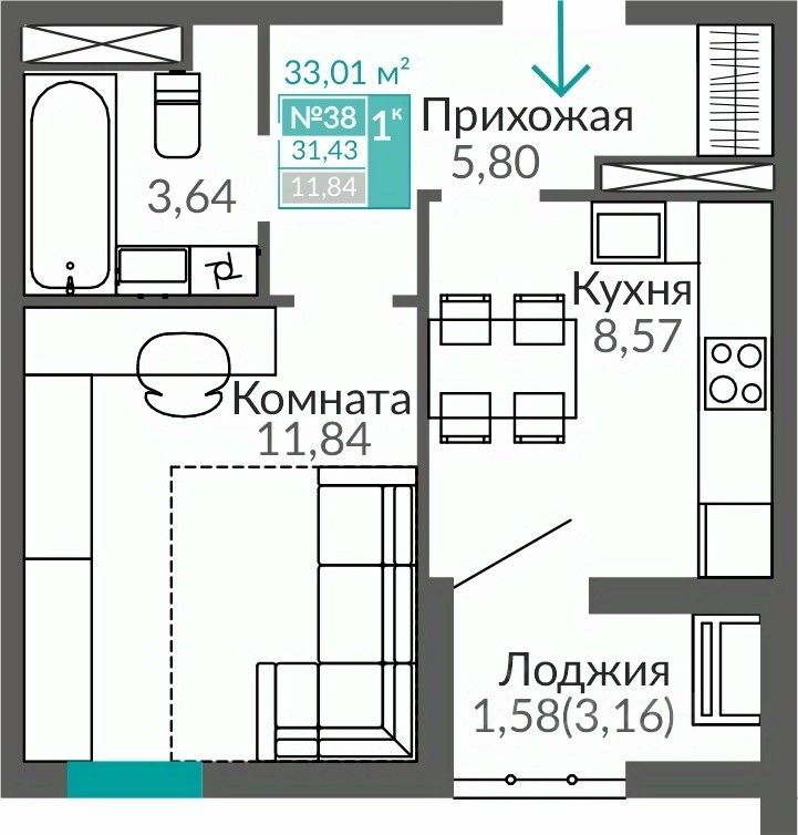 Продаётся 1-комнатная квартира в строящемся доме (Этап 16 (Секция В9)), срок сдачи: II-кв. 2027, общей площадью 31.43 кв.м., на 7 этаже. В жизни каждого наступает момент, когда мы понимаем, что выросли. Приходит время твердо идти вперед, расширять границы и открывать новые горизонты.