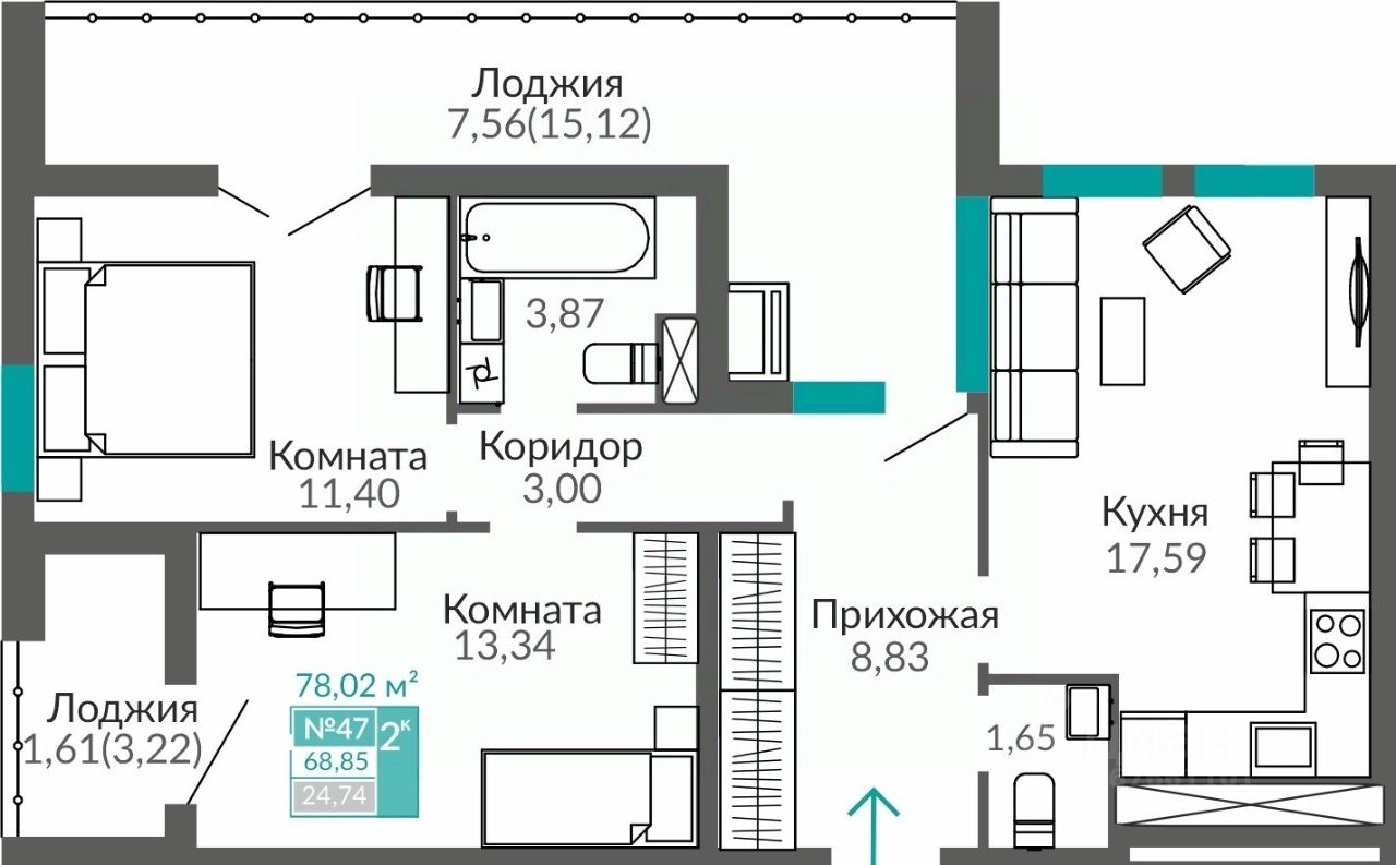 Продаётся 2-комнатная квартира в строящемся доме (Этап 16 (Секция В9)), срок сдачи: II-кв. 2027, общей площадью 68.85 кв.м., на 8 этаже. В жизни каждого наступает момент, когда мы понимаем, что выросли. Приходит время твердо идти вперед, расширять границы и открывать новые горизонты.