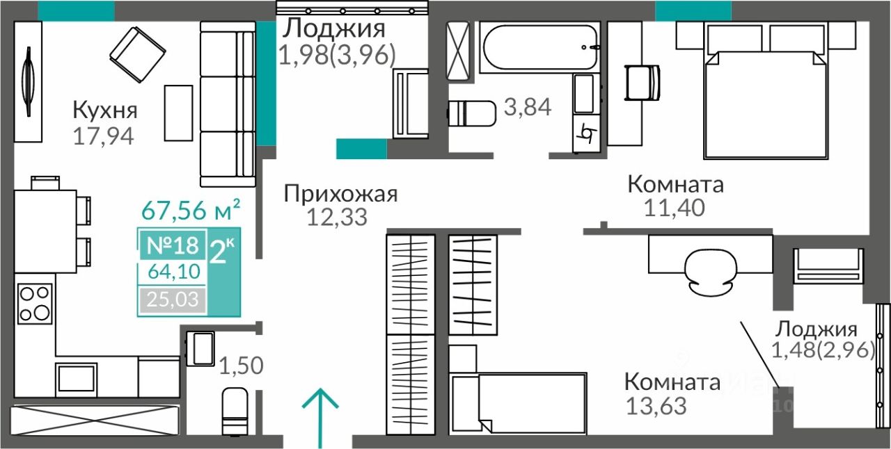 Продаётся 2-комнатная квартира в строящемся доме (Этап 16 (Секция В9)), срок сдачи: II-кв. 2027, общей площадью 64.1 кв.м., на 3 этаже. В жизни каждого наступает момент, когда мы понимаем, что выросли. Приходит время твердо идти вперед, расширять границы и открывать новые горизонты.