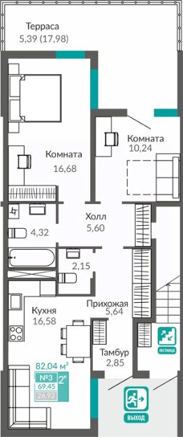 Продаётся 2-комнатная квартира в строящемся доме (Этап 16 (Секция В9)), срок сдачи: II-кв. 2027, общей площадью 69.45 кв.м., на 1 этаже. В жизни каждого наступает момент, когда мы понимаем, что выросли. Приходит время твердо идти вперед, расширять границы и открывать новые горизонты.