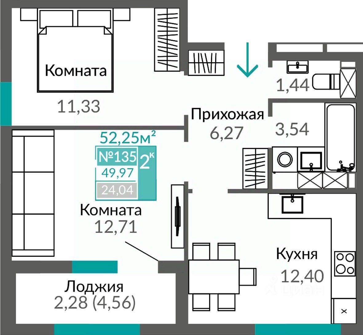 Продаётся 2-комнатная квартира в сданном доме (пр. Александра Суворова, 105 (этап 51)), срок сдачи: II-кв. 2024, общей площадью 49.97 кв.м., на 6 этаже. Новый жилой комплекс "Тюльпаны" от застройщика "Монолит" расположен по адресу Республика Крым, Симферополь, Объездная дорога.