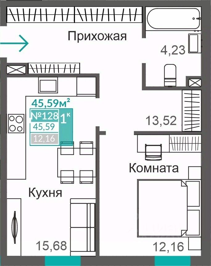 45,59 м²