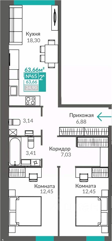 Продаётся 2-комнатная квартира в строящемся доме (С7), срок сдачи: III-кв. 2027, общей площадью 63.66 кв.м., на 1 этаже. Жилой квартал "Абрикос" - начало яркой истории жизни в прогрессивном районе Симферополя - Семья городских кварталов "Крымская Роза". Вы станете частью комьюнити, где царят принципы удобства, легкости, комфорта, заботы о здоровом образе жизни, добрососедства и открытости. Ваш дом - это место для отдыха, развития, общения и дружбы. Мы спроектировали дворовое пространство квартала так, чтобы каждому члену семьи было весело играть на площадках, спокойно расслабляться под перголой, ставить рекорды в зоне воркаута, узнавать новости от соседей в кофейне возле дома, или устраивать фотосессии с детьми в фактурной тени деревьев. Жилой квартал оживает вместе с вами и готов вместе с вами меняться!
