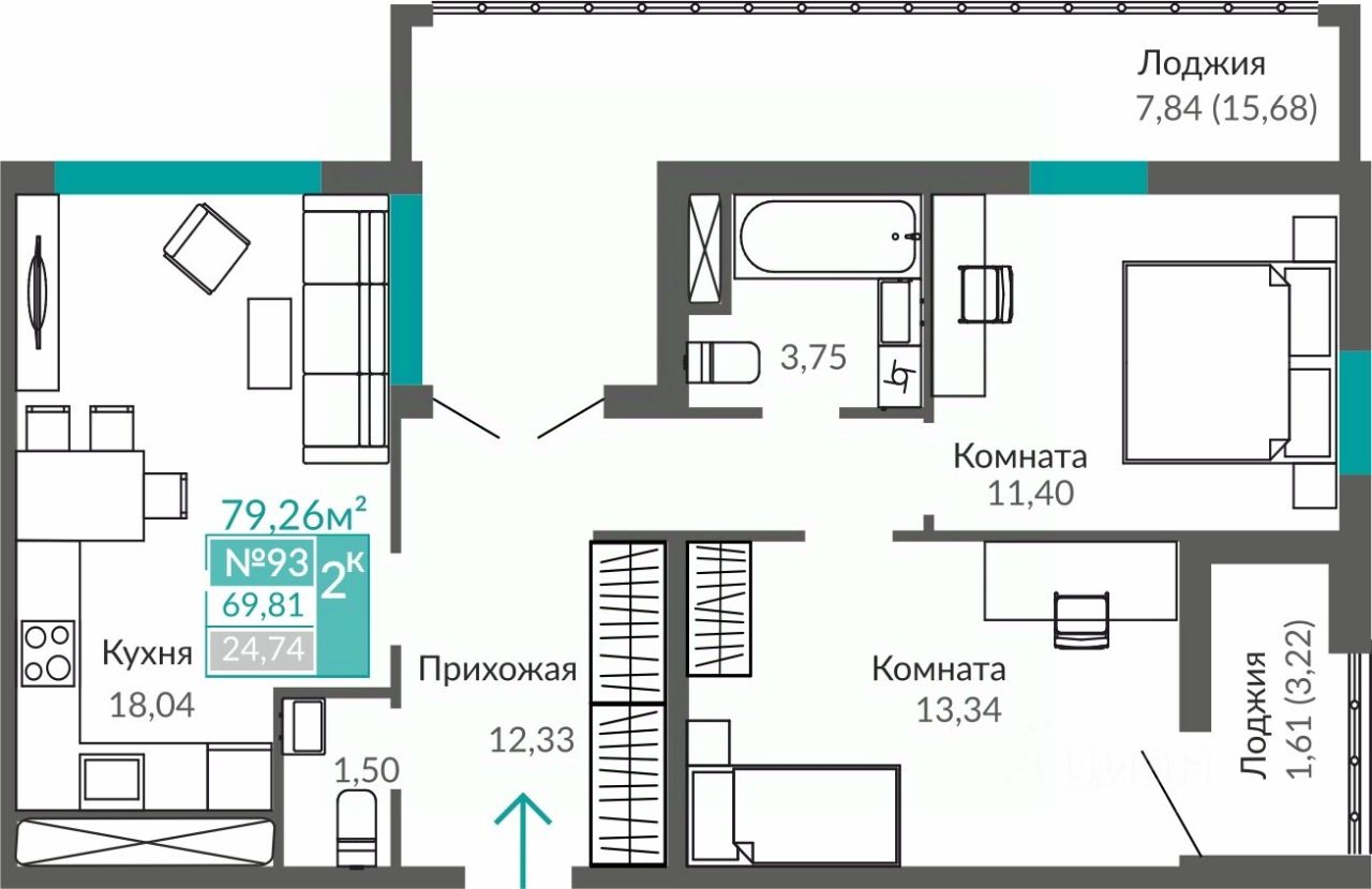 Продаётся 2-комнатная квартира в строящемся доме (С7), срок сдачи: III-кв. 2027, общей площадью 69.81 кв.м., на 5 этаже. Жилой квартал "Абрикос" - начало яркой истории жизни в прогрессивном районе Симферополя - Семья городских кварталов "Крымская Роза".