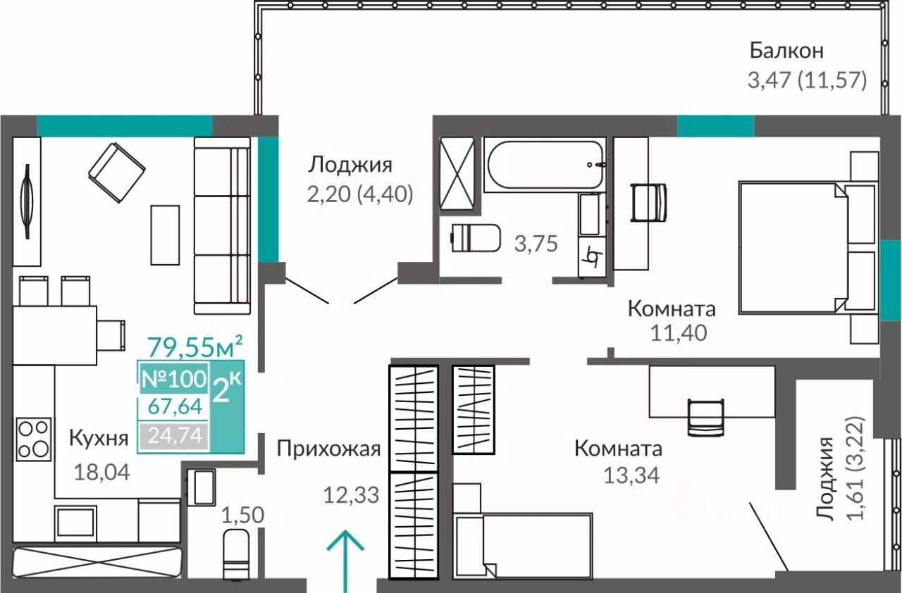 Продаётся 2-комнатная квартира в строящемся доме (С7), срок сдачи: III-кв. 2027, общей площадью 67.64 кв.м., на 6 этаже. Жилой квартал "Абрикос" - начало яркой истории жизни в прогрессивном районе Симферополя - Семья городских кварталов "Крымская Роза".