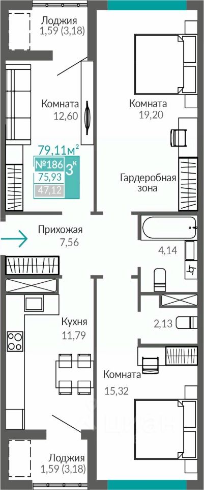 Продаётся 3-комнатная квартира в строящемся доме (С7), срок сдачи: III-кв. 2027, общей площадью 75.93 кв.м., на 9 этаже. Жилой квартал "Абрикос" - начало яркой истории жизни в прогрессивном районе Симферополя - Семья городских кварталов "Крымская Роза".